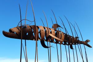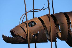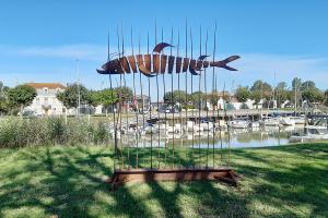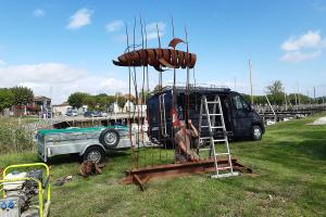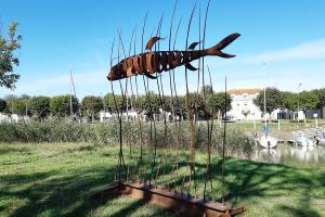 La sculpture "Être sous la mer" témoigne de cette fusion de la nature et du patrimoine réutilisé que l’artiste cherche à créer. Cette créature marine articulée, glissant au gré des courants marins est une symphonie visuelle qui invite à la réflexion sur notre connexion à l'environnement.