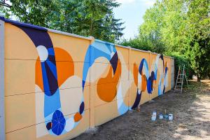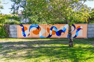 Entre travail de commande et pratique personnelle, Mélanie déploie un vocabulaire de formes pour donner vie à des histoires et laisser la possibilité d’en inventer de nouvelles. Du carnet où tout commence jusqu’à la fresque murale, en passant par le tatouage, ses supports se multiplient pour déployer les lignes et les récits. À l’instar d’un jeu de construction, elle rassemble et assemble les formes pour trouver l’équilibre entre différentes couches de réel. Créer des espaces modulables où des futurs sont à construire, des endroits rêvés où se réfugier. Des espaces qui, même fissurés, sont des appels à un repli sur soi bénéfique et apaisant, où l’on peut réfléchir, penser, imaginer.