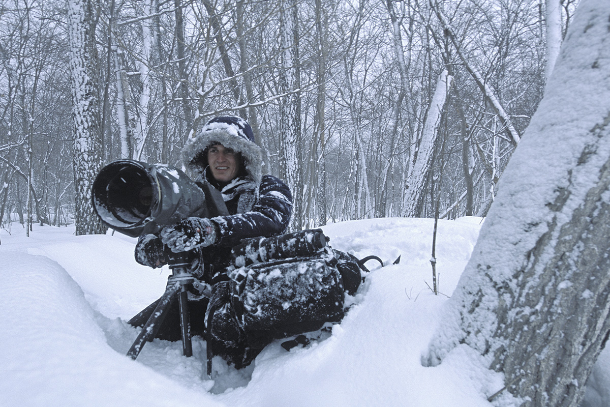 Vincent Munier, photographe français né en 1976 dans les Vosges, est passionné dès l’enfance par la nature sauvage. Inspiré par l’art minimaliste et les estampes japonaises, il photographie les animaux dans leur environnement avec patience, discrétion et respect, privilégiant l’immersion et l’effacement. Son travail l’a mené des forêts vosgiennes aux hauts plateaux du Tibet et aux terres arctiques.