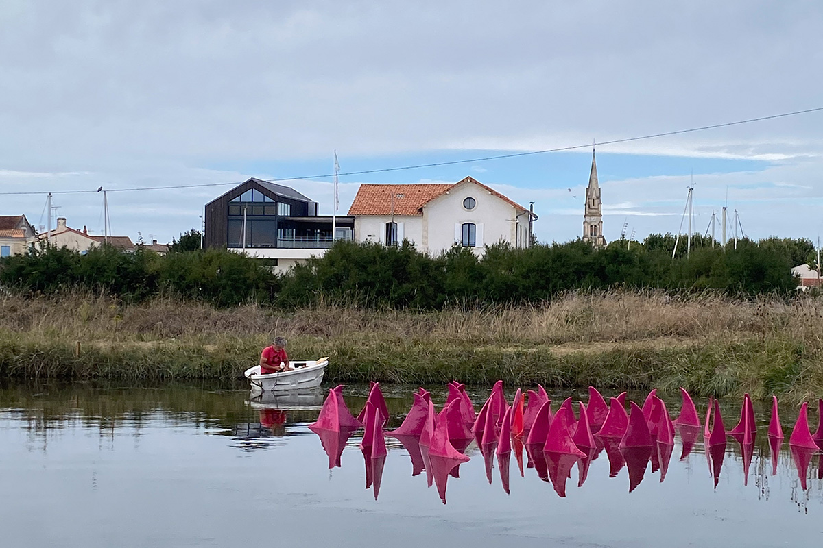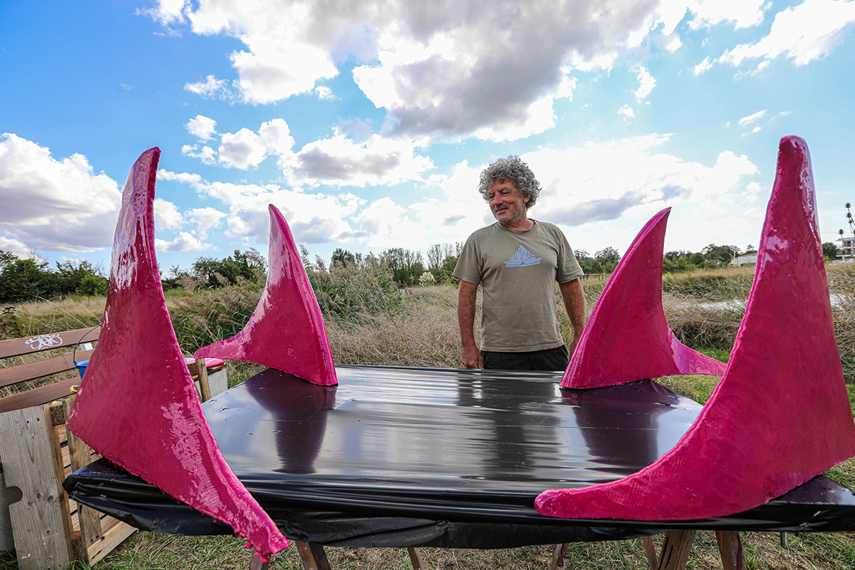 Sous son apparence ludique et poétique, l’œuvre dénonce l’illusion du contrôle que l’homme pense avoir sur son environnement naturel et son aveuglement face aux urgences écologiques. C’est un manifeste critique mêlant art, politique et écologie. Créée dans un contexte personnel d’exil temporaire aux États-Unis, l’œuvre reflète un tournant plus engagé de l’artiste, influencé par un environnement social marqué par le déni, l’extré-misme et les fractures idéologiques. Elle reprend les codes des parcs aquatiques, de la consommation de la nature comme spectacle, rappelle la prédation excessive de certaines espèces menacées, célébrant au passage le cinquantenaire du film culte Les Dents de la Mer. En plongeant le visiteur dans un paysage maritime faussement paisible, Marineland use de l’ironie et de la confrontation pour interpeller le spectateur et lui rappeler que nous ne sommes, nous aussi, qu’une espèce vulnérable en voie de disparition. *Ne nourrissez pas les animaux avec des personnes, sauf si ce sont des idiots, des racistes, des fascistes, ou s’ils ne croient pas au changement climatique ou à l’extinction des espèces.